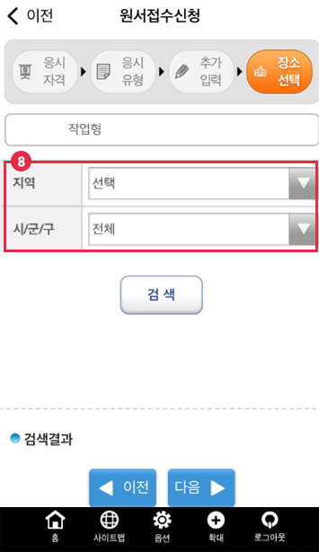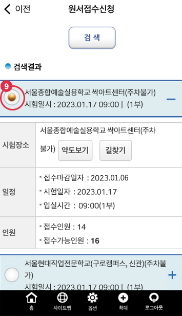 응시할 종목 입력 후 ‘종목검색’ 클릭